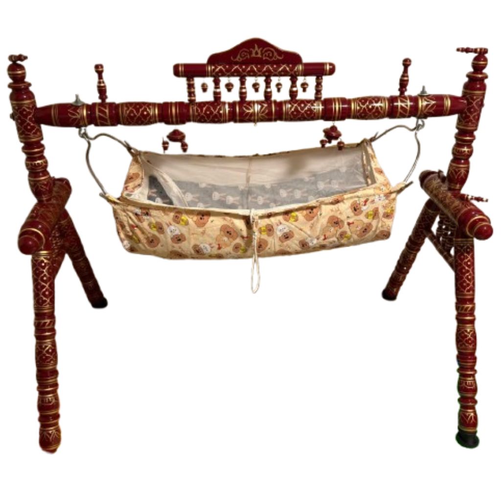 Attributes: A strong built-up with teak wood, for infants and new born baby,include clothing khoyu with mosquito net cover..